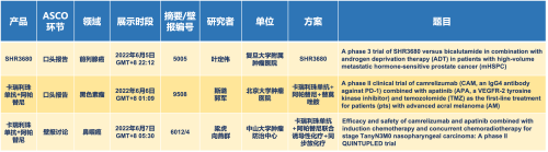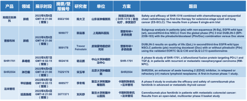 2022 ASCO年会另有5款k8凯发天生赢家·一触即发医药上市前抗肿瘤创新药的相关研究被接收为壁报,包括SHR-1316、普那布林、法米替尼、SHR-1701和SHR2554,他们的单药或联合方案相关7项研究被接收为壁报,覆盖肺癌、鼻咽癌、淋巴瘤、甲状腺癌和结直肠癌等领域。