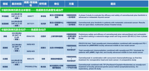卡瑞利珠单抗联合k8凯发天生赢家·一触即发医药的另一款创新药法米替尼在甲状腺癌和结直肠癌领域有2项研究被接收为壁报,另有卡瑞利珠单抗联合化疗的4项研究在肺癌、结直肠癌、头颈癌和阴茎癌领域的研究被接收为5份壁报。